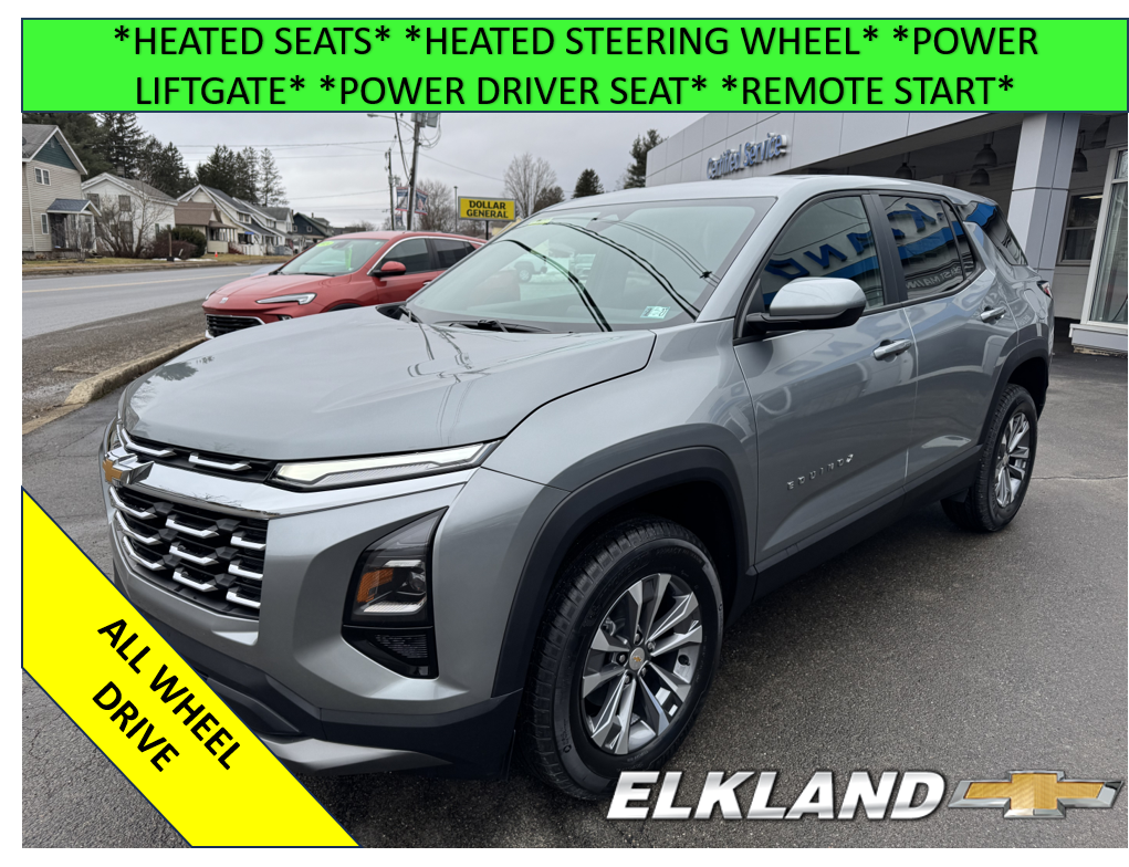 New 2026 Chevy Equinox LT AWD in Sterling Gray Metallic. Equipped with black Evotex interior, Heated seats, Heated steering wheel, Remote start, Power liftgate, Power driver seat, Adaptive cruise control, and more.