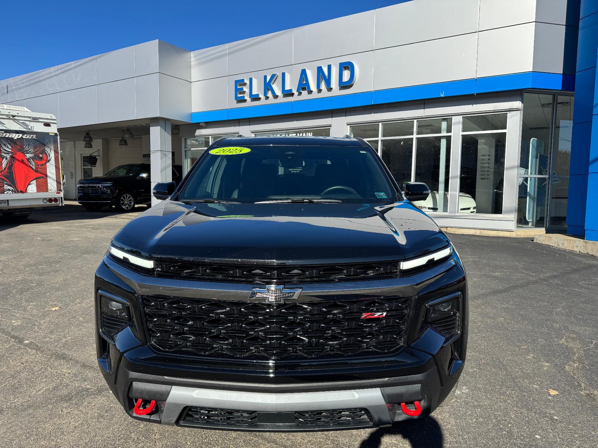 One owner, that we sold new here, 2025 Chevy Traverse Z71 in Mosaic Black Metallic. Equipped with black interior with red accents, Heated seats, Heated steering wheel, Power liftgate, Remote start, Surround vision, Adaptive cruise control, Side blind zone alerts, and more.